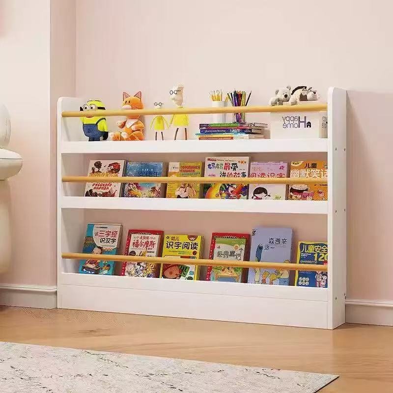 There are bookshelves above